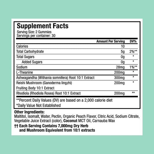 Plant People WonderCalm Mushroom Gummies - Ashwagandha Stress Relief Supplement, Vegan Peach Gummies, 60 Count, Sugar-Free