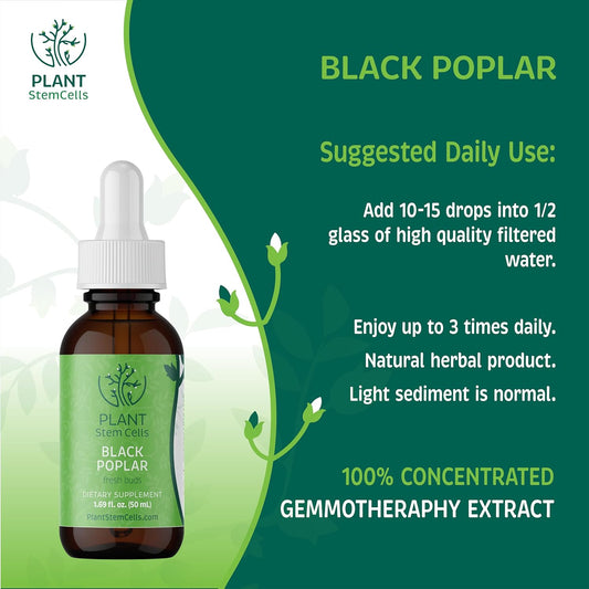 Plant Stem Cells Gemmotherapy: Black Poplar for Digestive & Circulatory Health - Antioxidant & Detox Support for Men & Women - Immunity Boost