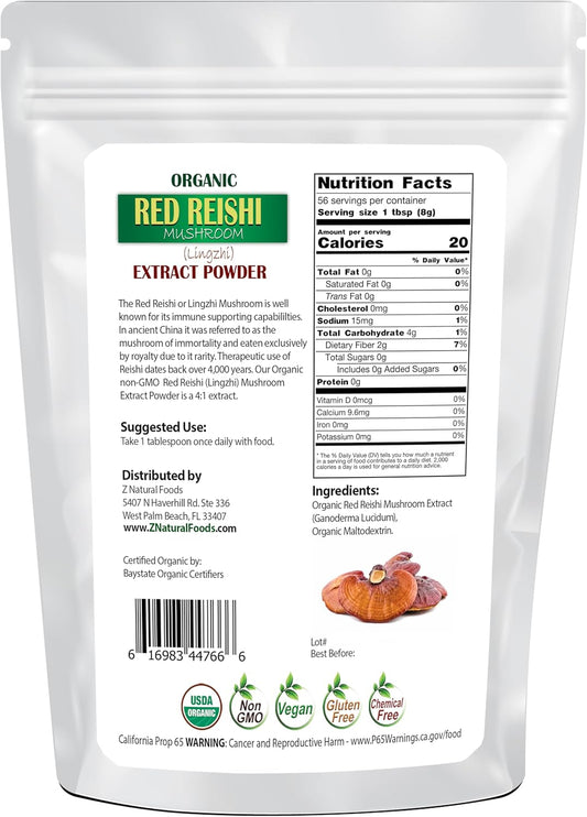 1 lb Organic Reishi Mushroom Extract Powder for Immune Health Support - High-Quality Concentrated Extract to Boost Energy in Coffee & Tea