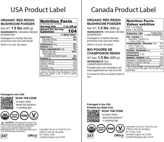 1.5 lb Food to Live Organic Red Reishi Mushroom Powder - Vegan Superfood for Immunity & Wellness, High in Antioxidants, Non-GMO, Pure for Smoothies