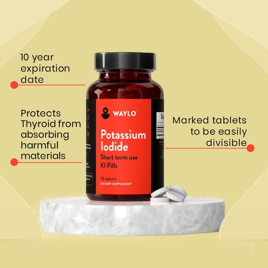 1 Pack of Waylo Potassium Iodide Tablets - 130mg, 75 Count, USA Made, cGMP Certified