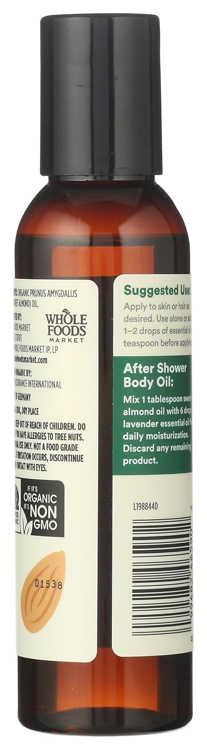 Organic Sweet Almond Oil - 365 by Whole Foods Market, 4 Fl Oz Bottle