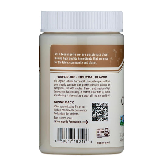 La Tourangelle Organic Refined Coconut Oil 14 fl oz - For Cooking, Baking, Hair, Skin Care - Expeller Pressed