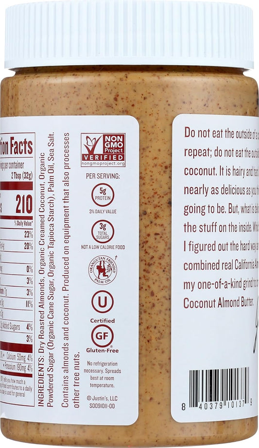 Justin's Organic Coconut Almond Butter - 16oz Jar | Non-GMO, Gluten-Free, Kosher | Responsibly Sourced Nut Butter - 1 lb Jar