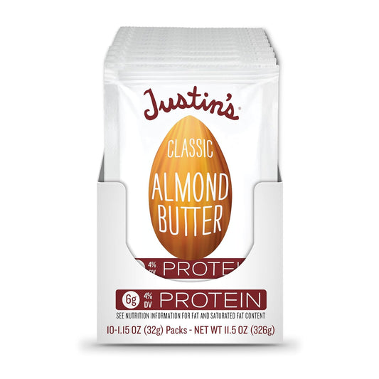 JUSTIN'S Classic Almond Butter Squeeze Packs - Gluten-Free and Convenient 1.15 Oz Packs (Pack of 10)
