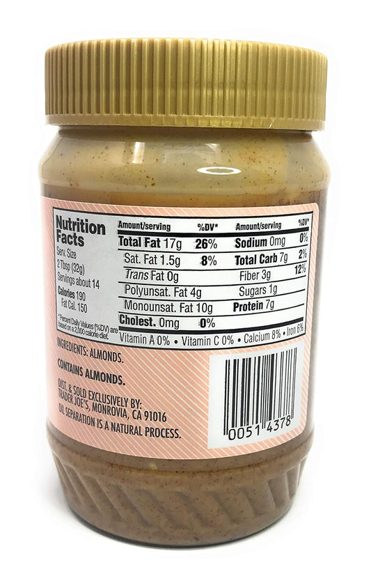 Trader Joe's Crunchy No Salt Almond Butter - 16 oz (Pack of 2) - Delicious and Natural Almond Spread