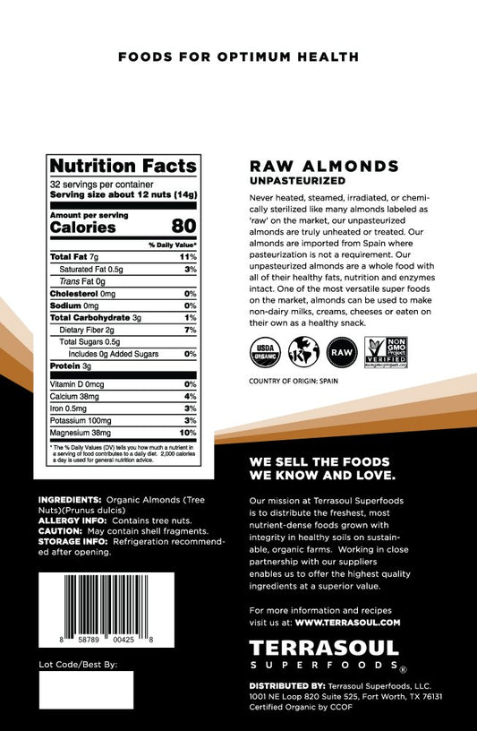 4 lbs of Terrasoul Superfoods Raw Organic Almonds, Unpasteurized & Sproutable