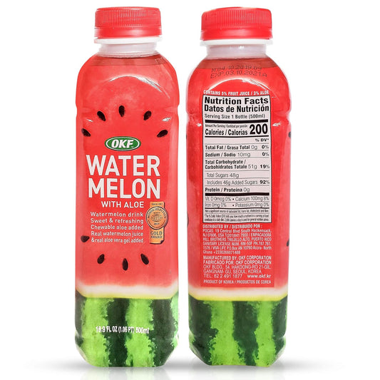 OKF Watermelon with Aloe Vera Drink, Real Watermelon Juice and Aloe Vera Gel, Sweet and Refreshing, Chewable Aloe, 16.9oz (Pack of 6)