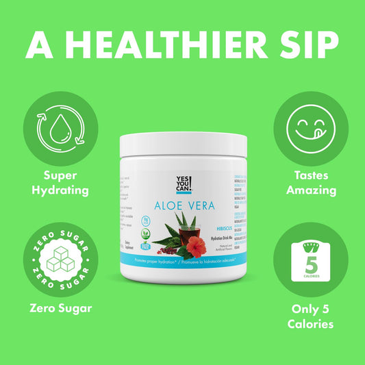 Organic Aloe Vera Powder Drink Mix - Hydration Booster with Pure Aloe Juice - Delicious Hibiscus Flavor - Antioxidant Rich - Made in USA - 40 Servings Per Canister (4 Pack)