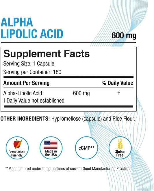 Alpha Lipoic Acid 600 mg - Powerful Antioxidant Supplement - 60 Capsules for Overall Health and Wellness