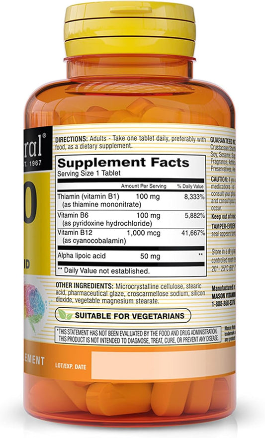 MASON NATURAL Neuro Complex Tablets with Alpha Lipoic Acid - Vegetarian-Friendly and 100 Count