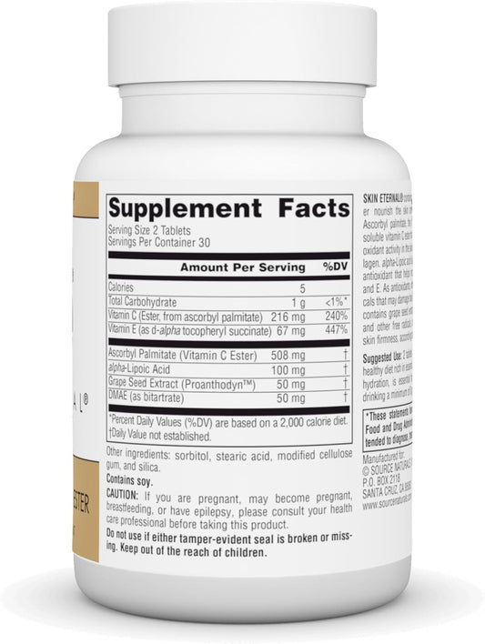 Skin Eternal Tablet with DMAE, Alpha Lipoic Acid, and Vitamin C Ester - 60 Tablets for Anti-Aging and Skin Health