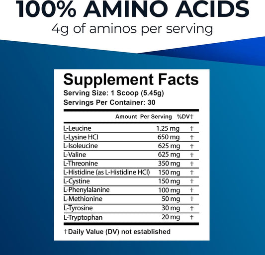 Citrus Flavor Amino Complex Supplement - 30 Servings, 4g Each - All 9 EAAs & BCAAs - Essential Amino Acid Powder for Energy & Muscle Recovery - Men & Women