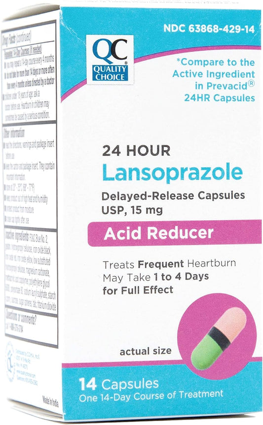Lansoprazole 15mg Delayed Release Capsules for Heartburn Relief - 14 Count, 24 Hour Acid Reducer, Proton Pump Inhibitor for Frequent Heartburn