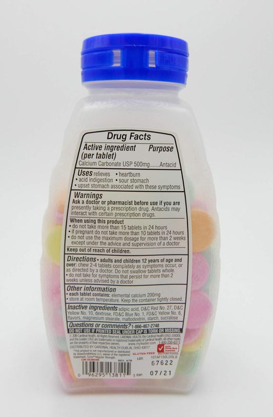 LEADER Antacid Calcium Carbonate Tablets - 500mg, Assorted Fruit Flavor - 150 Count Pack of 1