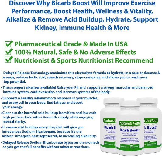Sodium Bicarbonate 650mg Tablets - Strongest Alkaline Electrolyte Supplement for Hydration, Endurance & Stamina: 120 Capsules