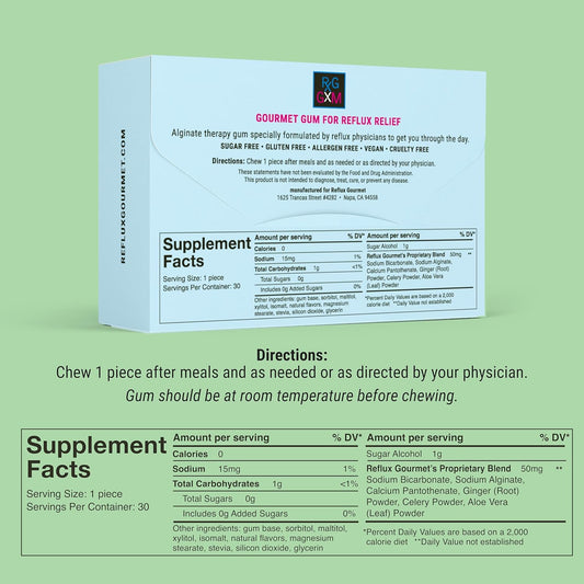 Natural Reflux Relief Gum with Ginger, Celeriac, and Aloe - Acid Reflux Therapy for Oral and Digestive Health - Vegan, Sugar-Free, Gluten-Free Gut Support