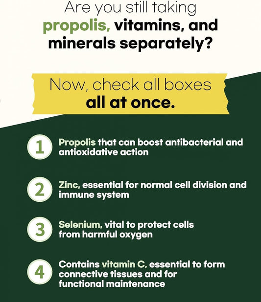 Chewable Propolis Tablets with 20mg Flavonoids for Immune Support and Antioxidant Protection - 60 Tablets