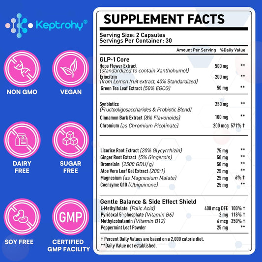 GLP-1 Supplement with Probiotic, Hops & Green Tea Extract - 120 Capsules for Gut Health & Energy Boost