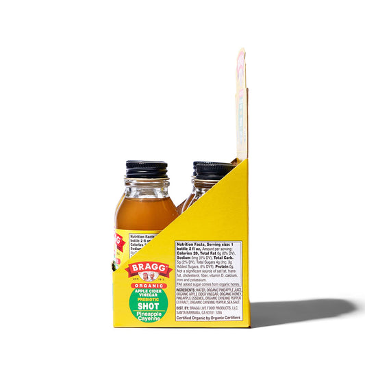 USDA Certified Organic Bragg Apple Cider Vinegar Shots in Pineapple Cayenne Flavor - 2 Fl Oz (Pack of 4)