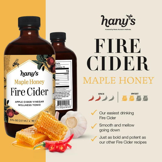 Hany's Harvest Maple Honey Fire Cider 16 fl oz Glass Bottle - All-Natural Immune & Digestive Support - Small-Batch Handcrafted