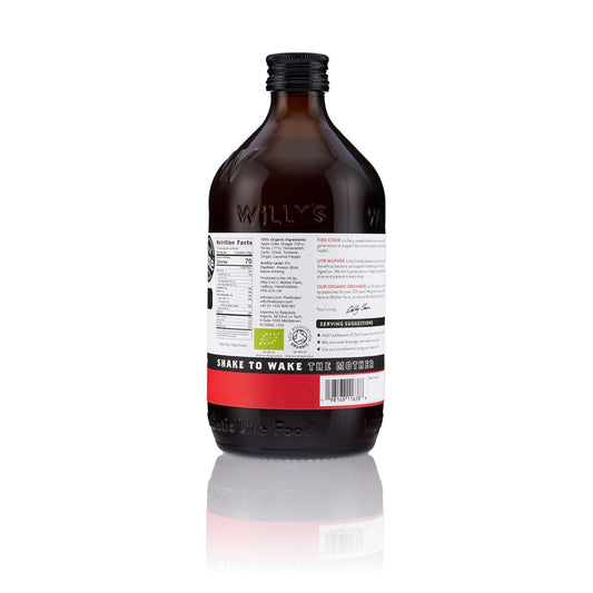 Organic Live Fire Cider with Mother - Probiotics for Detox & Gut Health - 16.9oz Glass Bottle - Apple Cider Vinegar Blend with Horseradish, Turmeric, Ginger, Honey, and Cayenne Pepper - Original Wild Apple Varieties for Savory Balance