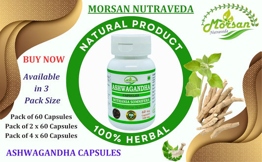 Ayurvedic Herbal Supplement: Morsan Nutraveda Ashwagandha Capsules for Men and Women - 500mg - 120 Veggie Capsules