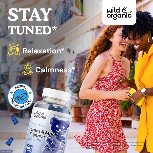 Organic Calm & Mood Support Gummies with Ashwagandha & Lemon Balm - 60 Count