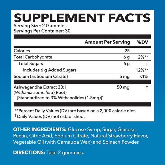 Vegan Ashwagandha Gummies for Stress Relief & Mood Support - Non-GMO Supplement for Relaxation - Withania Somnifera for Better Sleep & Emotional Balance - 1-Month Supply, Strawberry Flavor