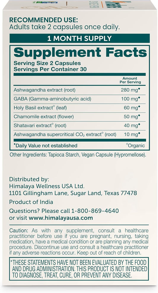 Himalaya Ashwagandha+ with GABA, Holy Basil & Chamomile - Stress Relief & Relaxation - Vegan, Gluten Free - 540mg, 60 Capsules