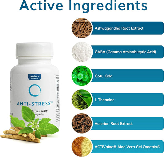 Univera Anti-Stress Supplement with Ashwagandha, GABA, L-Theanine, Gotu Kola - 60 Capsules