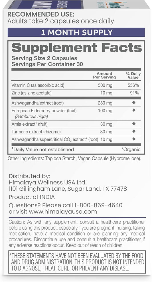 Immune Support Capsules with Ashwagandha, Elderberry, Zinc & Vitamin C - 60 Vegan Capsules, Gluten Free - 1 Month Supply
