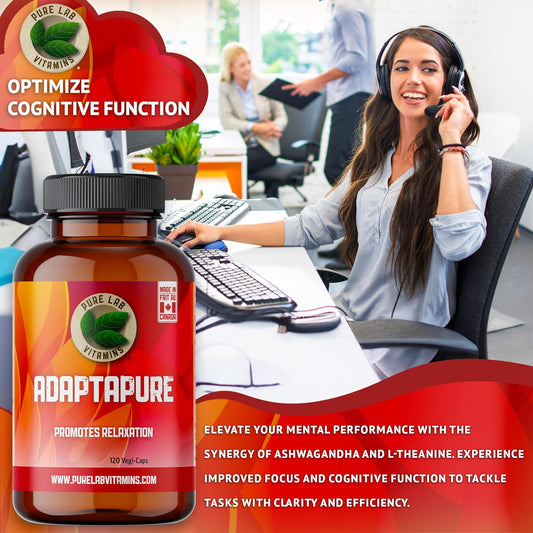 Adaptapure with Ashwagandha, Rhodiola Rosea, L-Theanine - 120 Capsules for Resilience, Stamina, Energy, Memory, Relaxation
