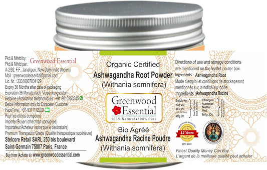 Organic Certified Ashwagandha Powder 50gm - 100% Natural Therapeutic Grade - Greenwood Essential