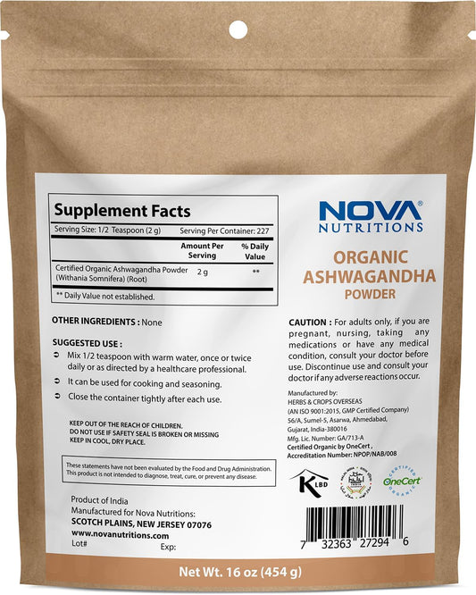 Organic Ashwagandha Powder 16 OZ - Withania Somnifera Supplement for Stress Relief and Immune Support