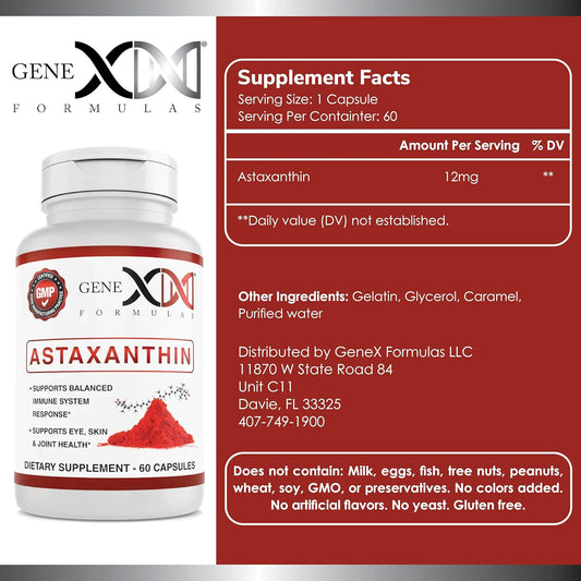Genex Formulas 12mg Astaxanthin Softgels - Natural Antioxidant for Eye, Skin, Joint Health - 60 Capsules - Gluten Free, Non-GMO - Immune Support (60 Day Supply)