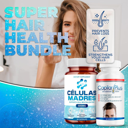 AFA Stem Cell & Hair Growth Supplement Bundle | Antiaging Support | Capilar Plus for Hair Loss | Healthy Skin, Hair & Nails | Spirulina & Chlorella - 60 Capsules Each