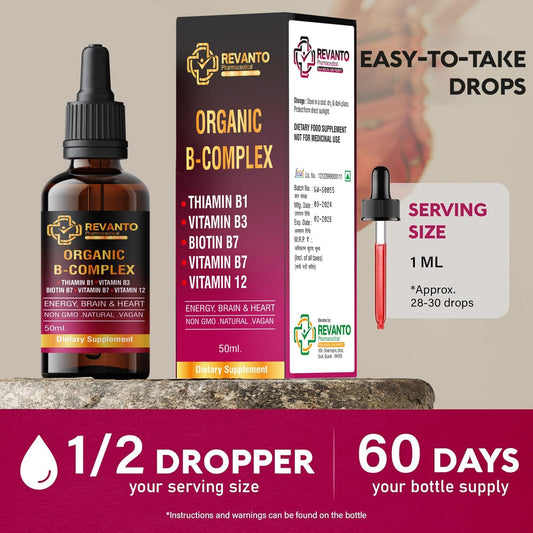 Revanto Pharmaceutical USDA Organic Vitamin B-Complex Serum with Pantothenic Acid, Methylcobalamin, Thiamine, Pyridoxine, Biotin, Folic Acid, and Niacinamide (1.7 Fl. Oz.)