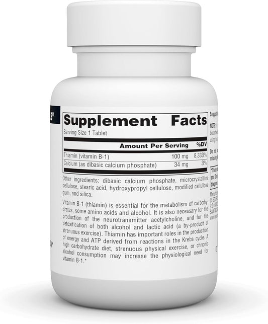 Source Naturals Vitamin B-1 Thiamin 100 mg Energy Production Support - 100 Tablets