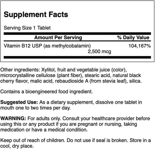 Swanson Methylcobalamin High Absorption Vitamin B-12 2.5 Milligrams 60 Tabs
