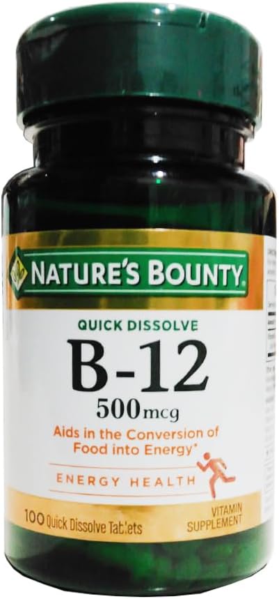 Vitamin B12 500mcg Quick Dissolve Tablets for Energy & Nervous System Health by Nature's Bounty - Pack of 100