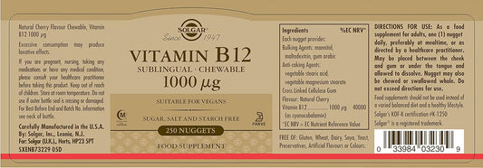 Solgar Vitamin B12 1000 mcg Nuggets - Supports Energy, Red Blood Cells, Nervous System, Cardiovascular Health - Non-GMO, Gluten Free, Kosher - 100 Servings