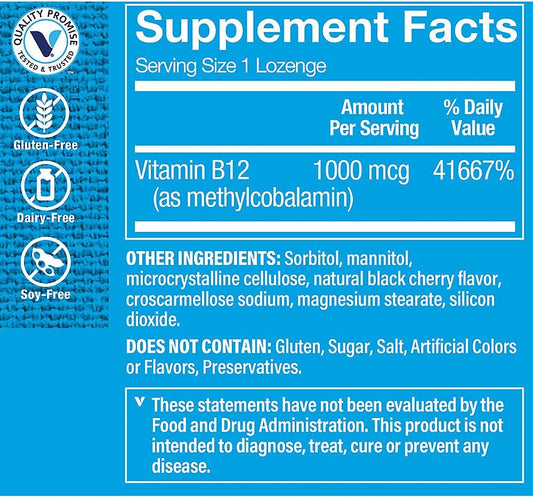 The Vitamin Shoppe Vitamin B12 1,000mcg Lozenges - Gluten & Dairy Free, Energy Support, Cyanocobalamin Supplement, Once Daily (100 Count)