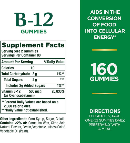Mixed Berry Flavored Vitamin B12 Gummies, 500mcg, 160 Count, Supports Energy Metabolism & Nervous System Health