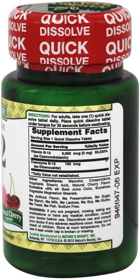 Nature's Bounty B-12 5000 mcg Quick Dissolve Cherry Flavor Tablets - 80 Count Pack