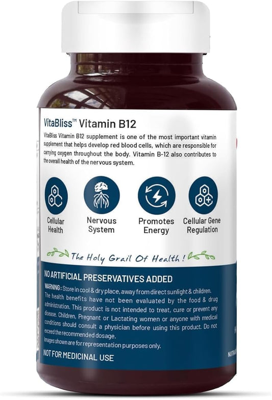 Vitamin B12 Supplement 100% RDA for Energy & Nervous System Support - 60 Vegetarian Tablets for Men & Women