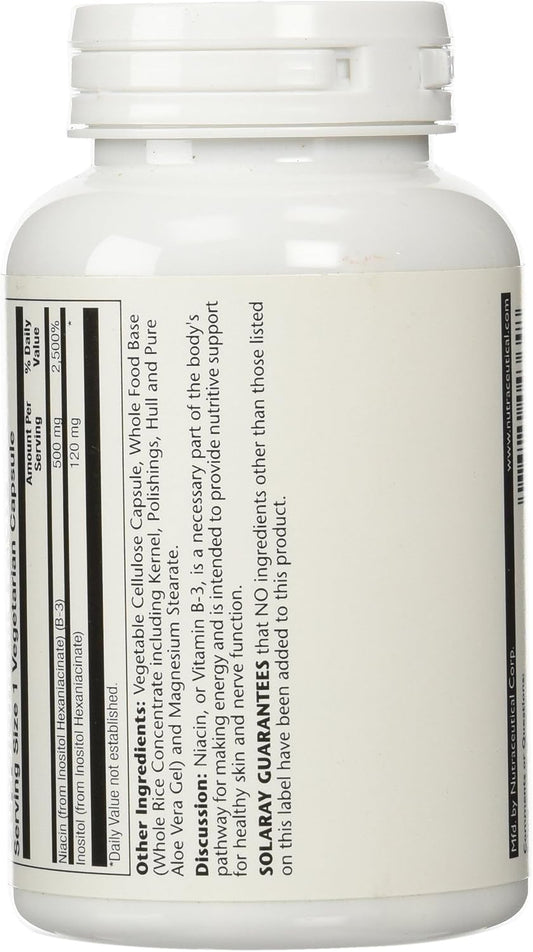 Solaray No Flush Niacin 500 mg - 100 Capsules - Non-Flushing Vitamin B3 Supplement for Cardiovascular Health and Energy Support