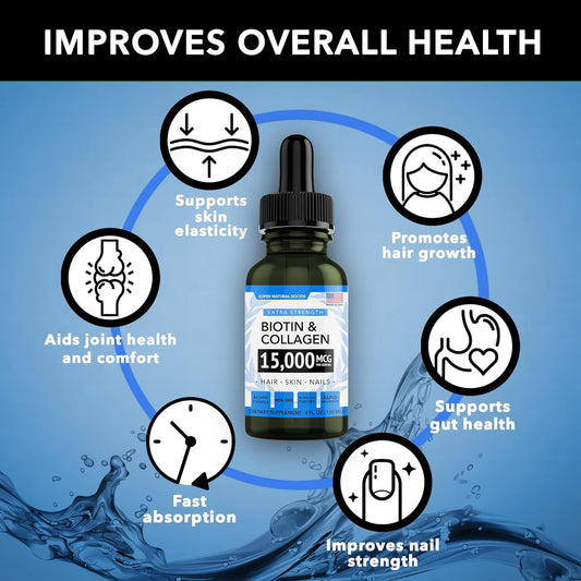 Biotin & Collagen Vitamins for Hair, Skin, Nails & Gut Health - Anti-Aging Supplement - Made in USA - Non-GMO, Cruelty Free - 4 oz, 15,000mcg