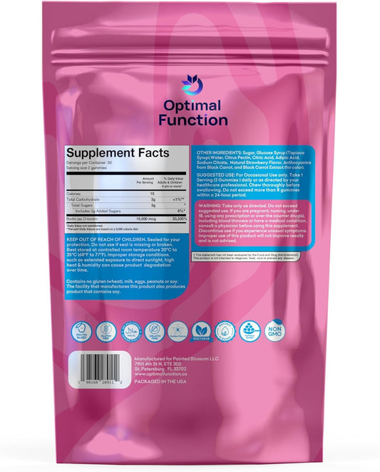 Extra Strength Biotin Gummies for Hair, Skin & Nails - 10,000 mcg, 60 Natural Gummies