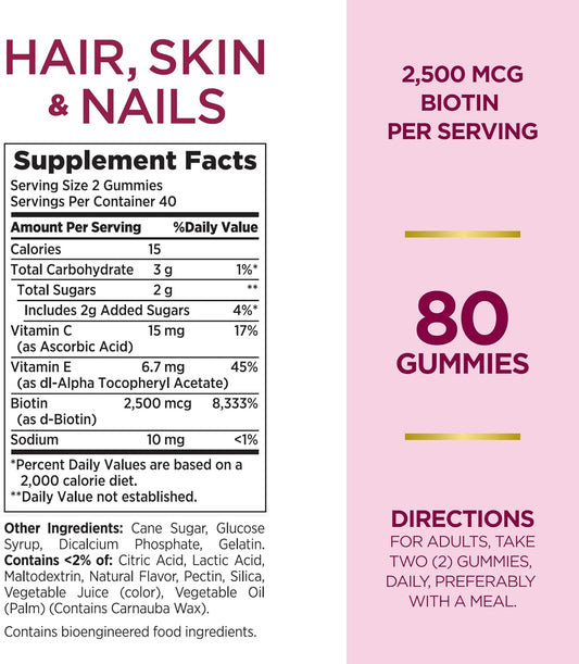 Strawberry Flavored Biotin Gummies for Hair, Skin & Nails - 80 Count